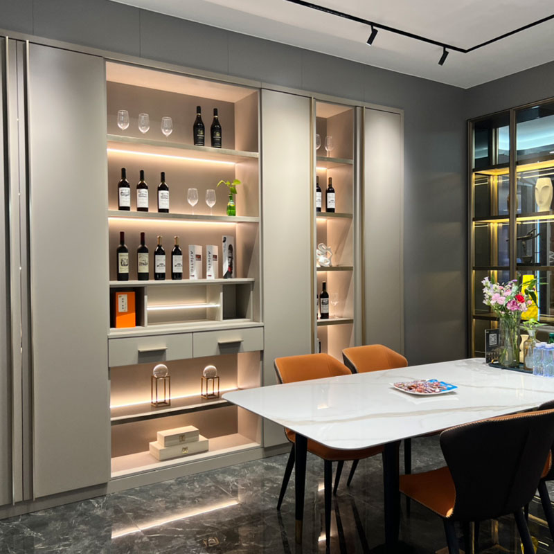 Sinoahbródúil as gairmiúla i soláthar Caibinéid Taobh Seomra Itheacháin saincheaptha don tógálaí, conraitheoir, forbróir agus úinéirí.Táirgeann Sinoah stíl gonta de chaibinéid seomra dinnéir le hábhair éagsúla cosúil le maighne, PVC, peataí, laicir agus gloine srl. de réir riachtanas agus buiséid an chliaint. Roghnaimid na hamhábhair cháilithe chun na caibinéid fíorálainn a chríochnú.