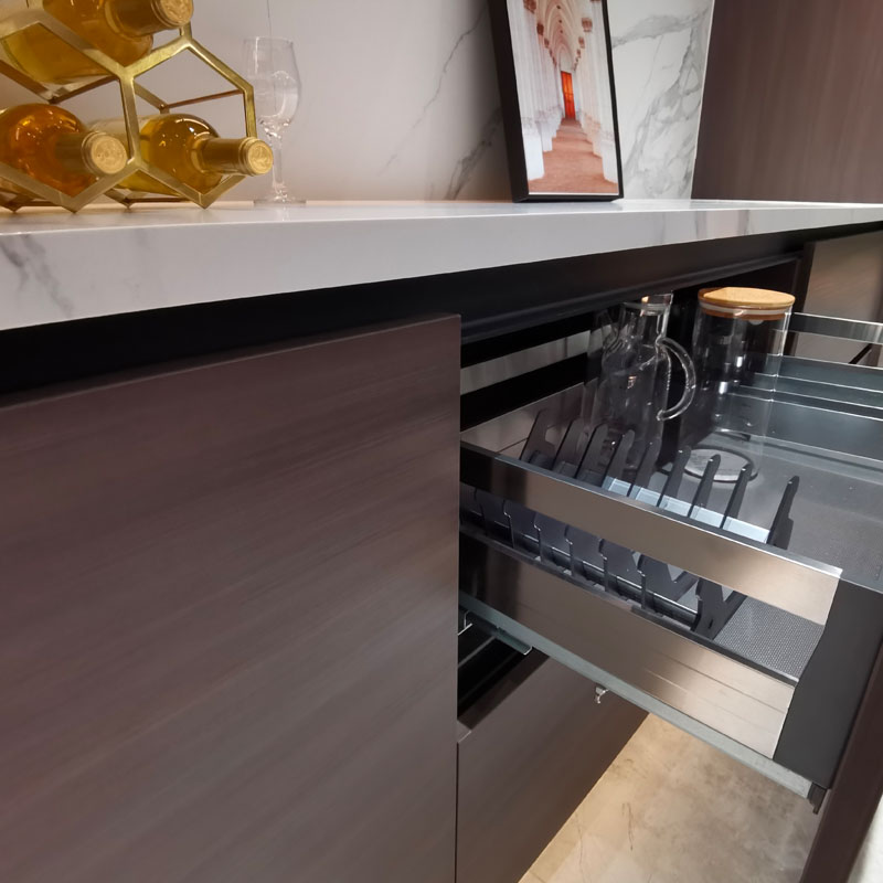| Cur síos | Comhoiriúnaíonn Caibinéid Cistine Adhmaid Laminated caibinéid cistine gloine |