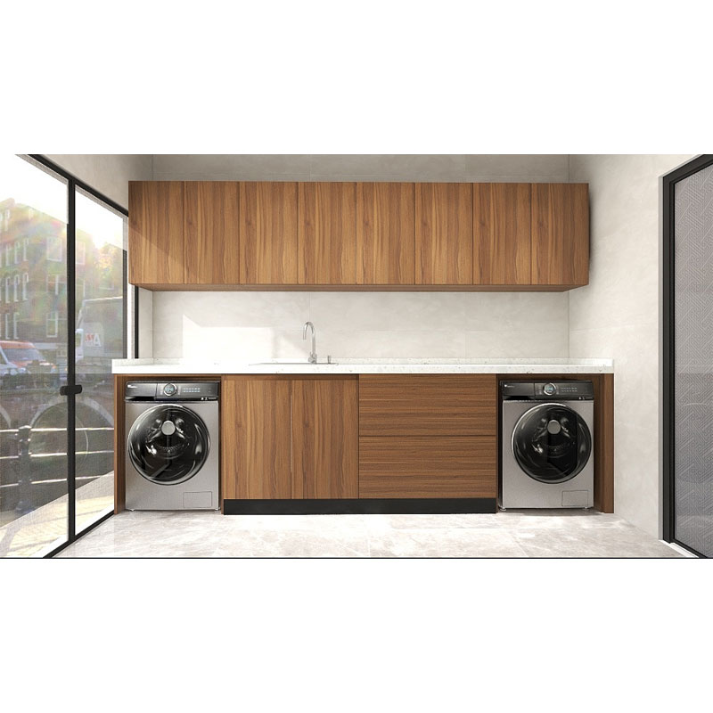 Tá na caibinéid seomra níocháin a tháirgtear againn déanta as adhmad soladach agus bord cáithníní uiscedhíonach le dathanna malemine, PET agus laicir.