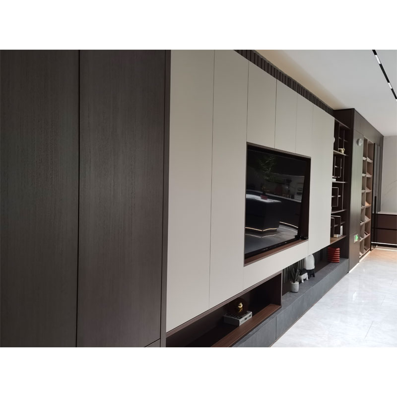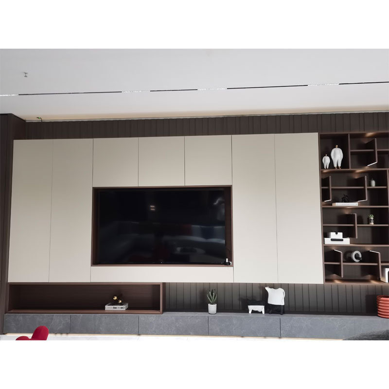 Déanann SINOAH speisialtóireacht i dtáirgeadh caibinéid teilifíse leabaithe nua-aimseartha. Molaimid an cineál comh-aireachta seo duit. Is meascán comhchuí iad ballaí teilifíse bána, binse teilifíse liath, agus seastán donn.