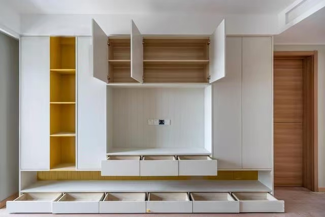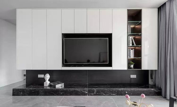 Is féidir leat an teilifís a úsáid freisin mar an croílár agus é a phéireáil le caibinéid, caibinéid urláir, agus caibinéid stórála chun dearadh níos laige agus níos praiticiúla a chruthú.