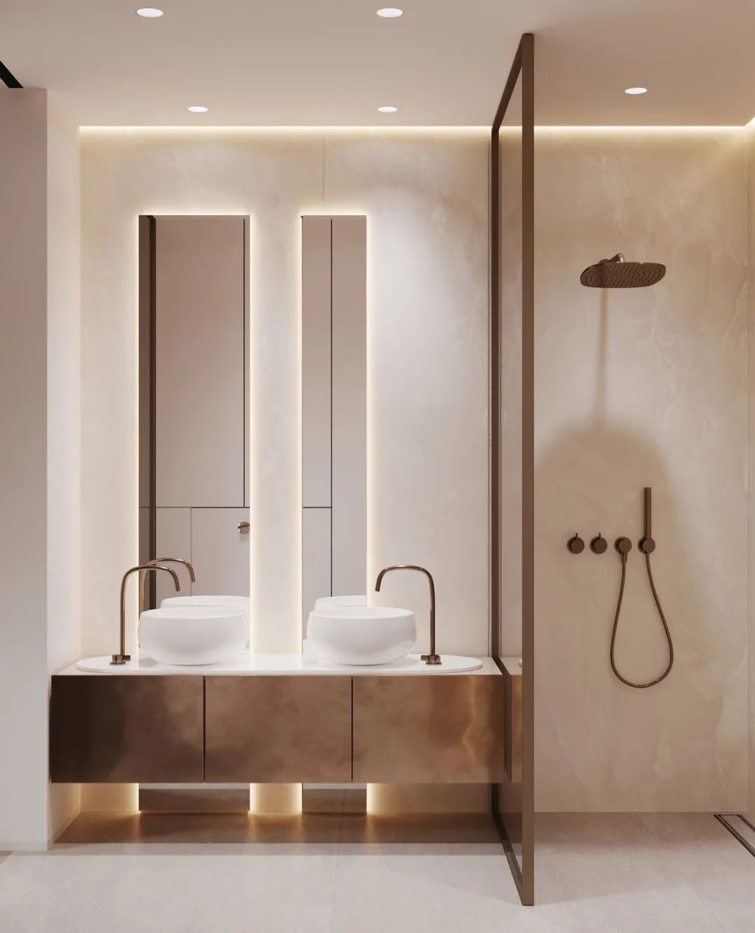Mar gheall ar an dearadh núíosach seo, is cosúil go bhfuil spásanna níos éadroime agus níos trédhearcaí, ag cur béime ar airde na síleála. Tá na limistéir ar fionraí saor ó choirnéil marbh sláinteachais freisin, rud a fhágann go bhfuil glanadh thar a bheith áisiúil. Tá sé an -oiriúnach d'árasáin mhóra agus bheaga araon.