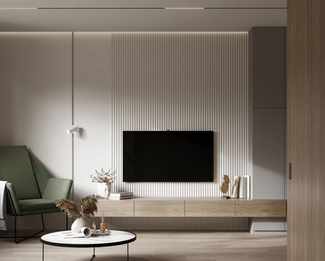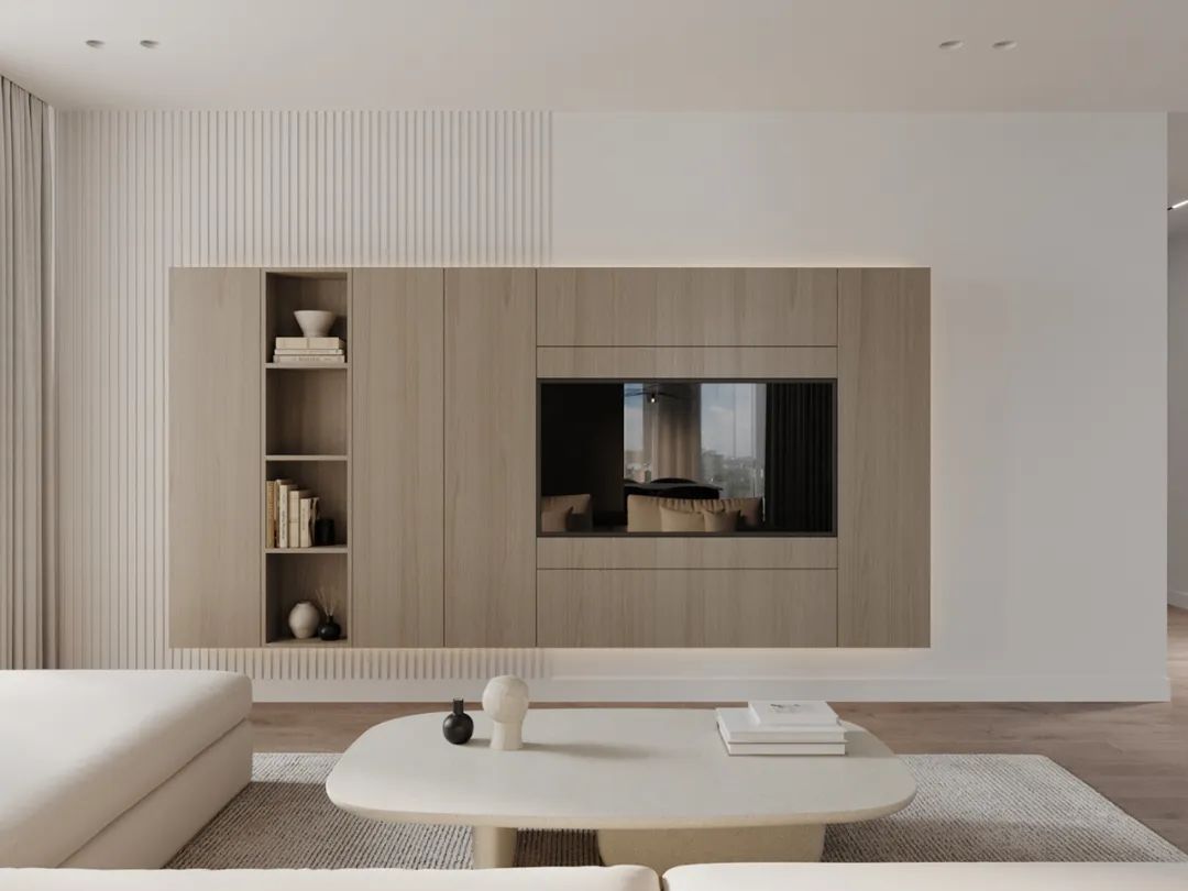 I gcás árasán níos lú, is féidir le comh-aireacht teilifíse lán-bhalla a bheith leatromach. Is féidir le comh -aireacht teilifíse ar fionraí, sleek an tuiscint ar an uafás a laghdú go héifeachtach, an spás maireachtála a shimpliú agus a leathnú. Cuireann sé le sofaisticiúlacht an tseomra suí agus is mór ag daoine óga é.