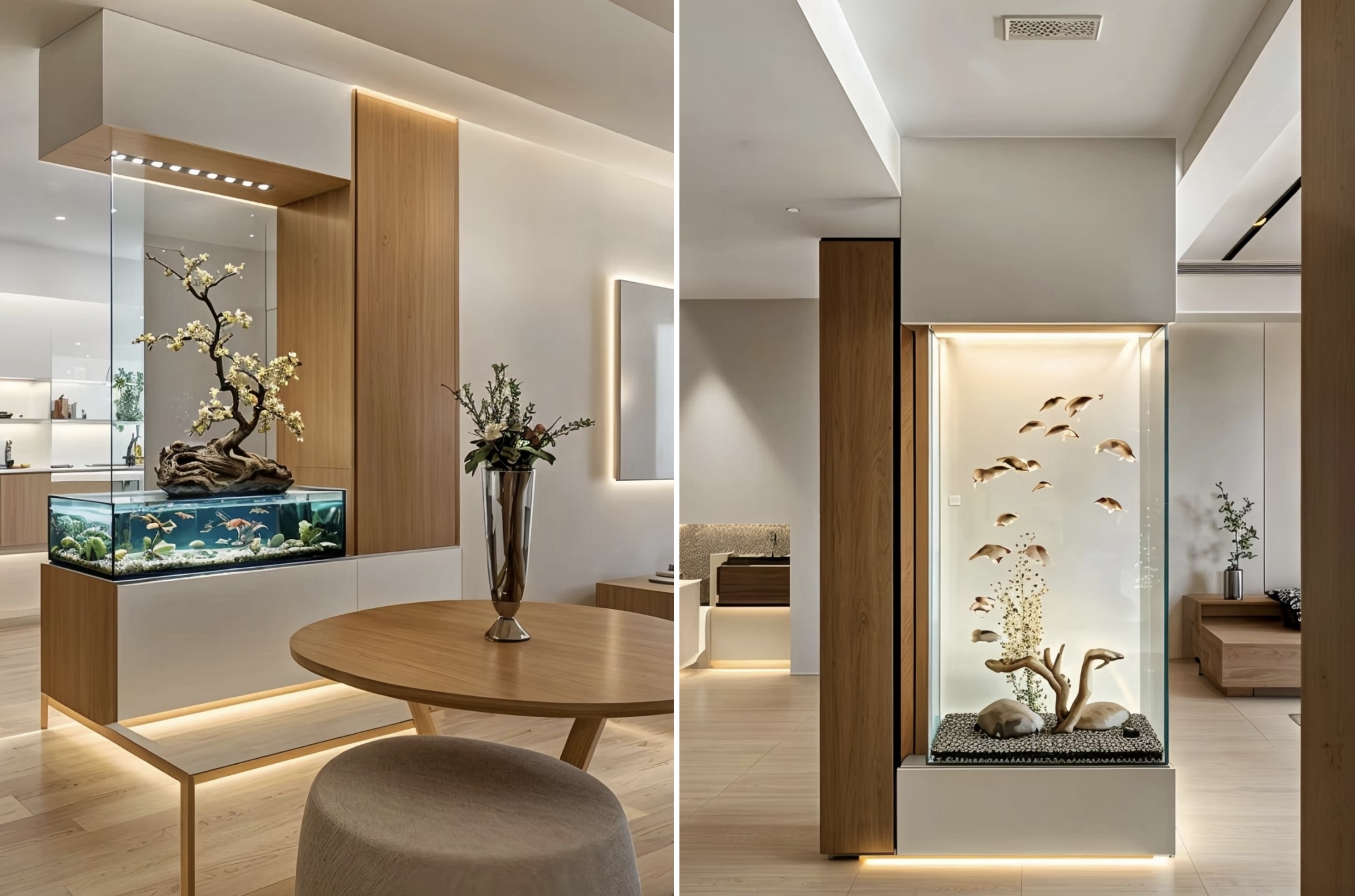 Feidhmíonn éicea-chquarium mar phointe fócasach, ag cur teagmháil spraíúil agus dinimiciúil leis an mbaile.
